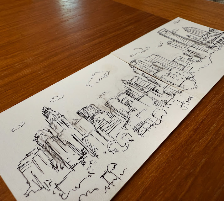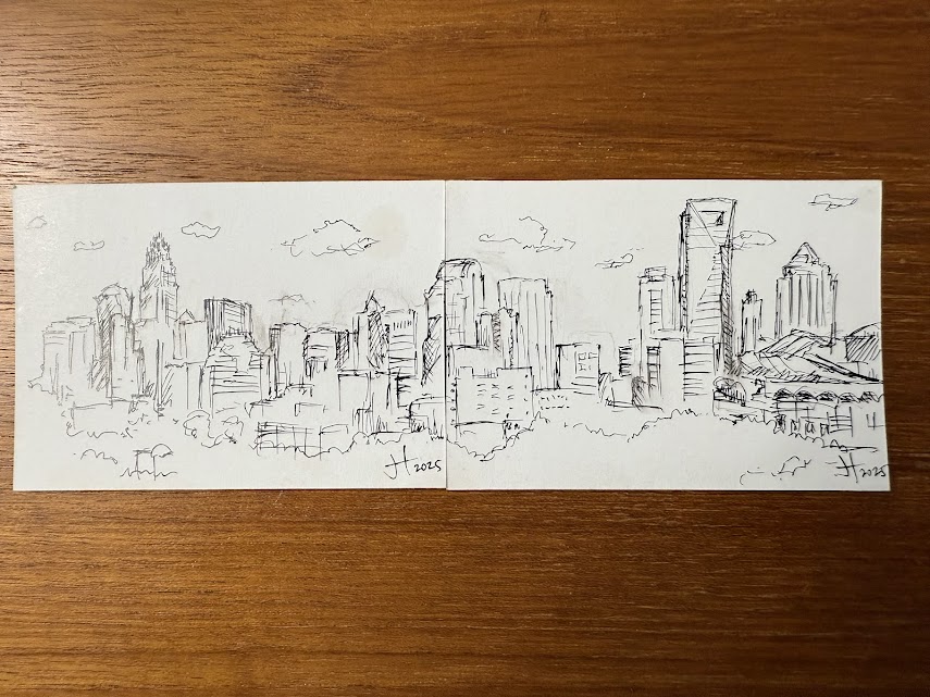 I ended up going “unconventional” and made a skyline using ink pens and two cards that can be connected: